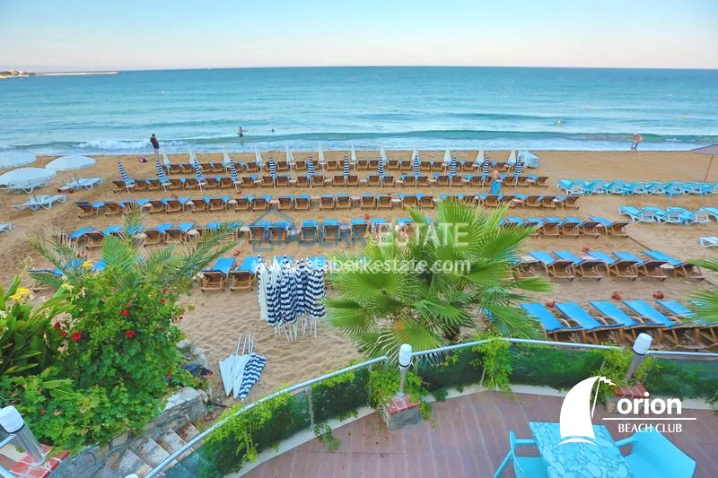 Для жителей комплексов Орион есть собственный пляж с шезлонгами и зонтиками.
