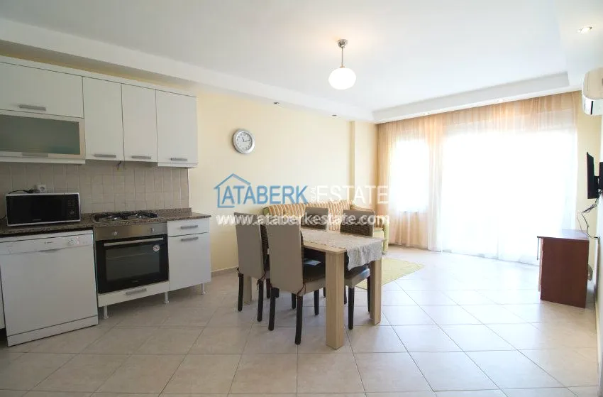 Вашему вниманию представляется квартира на аренду в клубном комплексе в районе Авсаллар. Жилой комплекс находится на возвышении, на второй линии от моря, ближе к пляжу расположены только отели. Состоит из 14 небольших таунхаусов на 2-4 квартиры и одного основного корпуса. В основном корпусе расположена большая часть инфраструктуры комплекса:
