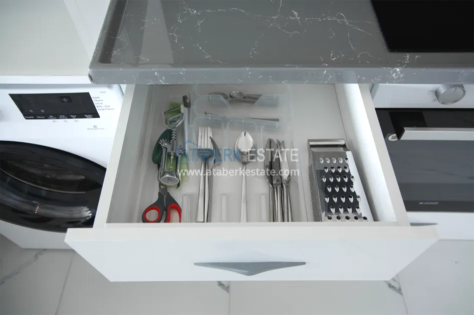 Двухкомнатные апартаменты 45 кв.м. включают в себя отдельную спальню, полностью оборудованную кухню, объединенную с гостиной, отдельную ванную с душевой кабиной и оснащены всем необходимым для комфортного пребывания пары или семьи из 4 человек. У нас два спальных места: в спальне двуспальная кровать и диван- кровать в гостиной. В апартаментах есть все необходимое: набор кастрюль и сковородок, блендер, соковыжималка для цитрусовых, бокалы для вина, стаканы, чашки, набор посуды для 4- х, салатники, набор ножей и столовых приборов, терка, открывалка, штопор и др. Также для вашего комфорта: мягкие полотенца, мыло для рук, гель для душа, гель для стирки, жидкость для мытья посуды, в общем, все, чтобы вы почувствовали себя «В Турции как дома!»