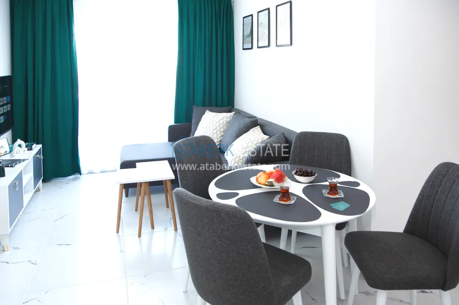 Двухкомнатные апартаменты 45 кв.м. включают в себя отдельную спальню, полностью оборудованную кухню, объединенную с гостиной, отдельную ванную с душевой кабиной и оснащены всем необходимым для комфортного пребывания пары или семьи из 4 человек. У нас два спальных места: в спальне двуспальная кровать и диван- кровать в гостиной. В апартаментах есть все необходимое: набор кастрюль и сковородок, блендер, соковыжималка для цитрусовых, бокалы для вина, стаканы, чашки, набор посуды для 4- х, салатники, набор ножей и столовых приборов, терка, открывалка, штопор и др. Также для вашего комфорта: мягкие полотенца, мыло для рук, гель для душа, гель для стирки, жидкость для мытья посуды, в общем, все, чтобы вы почувствовали себя «В Турции как дома!»