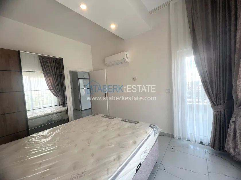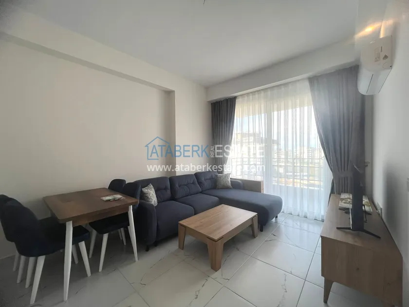 Апартаменты планировки 1+1 предлагают вам отдельную спальню, полностью оборудованную кухню, которая гармонично соединена с гостиной, а также отдельную ванную комнату с душевой кабиной и балкон с частичным видом на море. Апартаменты расположены на 8 этаже и оснащены всем необходимым для вашего пребывания.