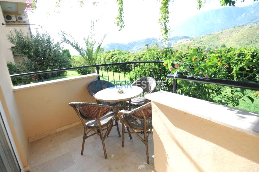 Апартаменты находятся на первом этаже с видом на собственный зеленый сад и Таврические горы. Квартира полностью укомплектована мебелью и необходимой бытовой техникой для комфортного проживания и отдыха.
