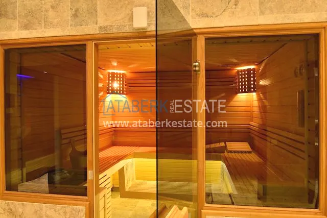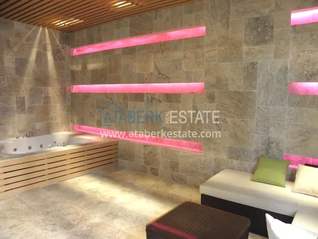 На территории комплекса так же есть все необходимое для Вашего комфортного пребывания: беспроводной интернет, общая комната с телевизором, книжным уголком и зоной отдыха, тренажёрный зал, традиционная турецкая баня- хамам, джакузи, финская сауна, лифт, имеется открытый бассейн с зонтиками, шезлонгами, зоной для отдыха и барбекю и небольшой бассейн для малышей. На охраняемой территории комплекса парковка для автомобилей и велосипедов. На случай отключения электричества имеется автономный генератор. В комплексе постоянно проживает смотритель, который следит за чистотой и порядком на территории и, в случае необходимости, поможет решить неотложную проблему.