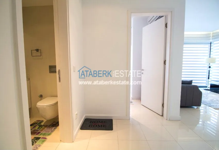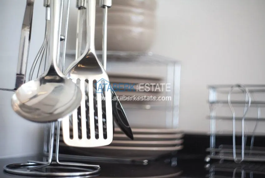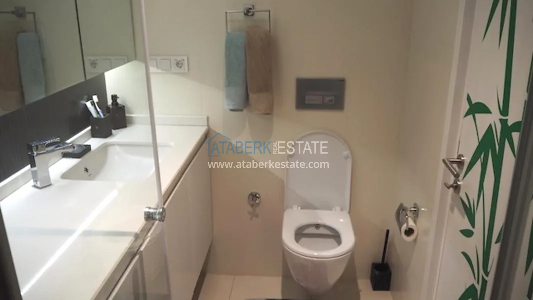В аренду сдаются двухкомнатные апартаменты общей площадью 65 м2 на третьем этаже 5-ти этажного комплекса. Комплекс расположен в престижном европейском районе города Алания Оба, в самом центре городского района, в тихом месте, всего в 100 метрах от набережной и оборудованного песчано-галечного пляжа.