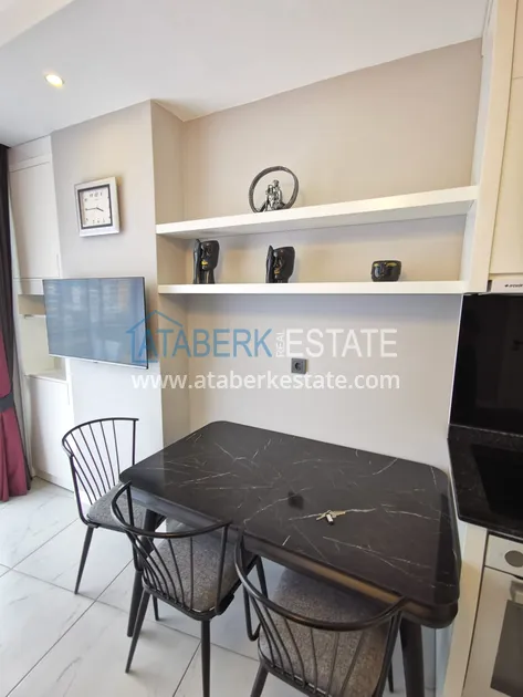 Планировка квартиры предлагает наличие гостиной, кухни американского типа, одной спальной комнаты, совмещенного санузла и одного балкона. Квартира оснащена всем необходимым для комфортного проживания: мягка и корпусная мебель, бытовая техника, кондиционеры, а также предметами быта (посуда, постельное белье).