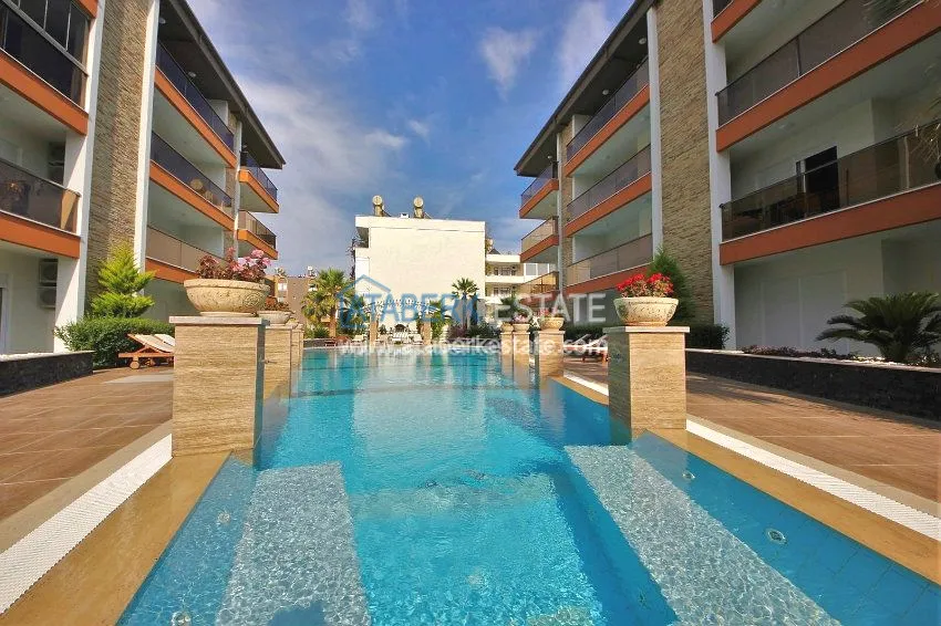 Двухкомнатная квартира расположена в жилом комплексе Diamond Beach 2, который находится в районе Авсаллар города Аланья. Район очень популярен у отдыхающих и известен шикарными песчаными пляжами с мелким песком и пологим входом в море.