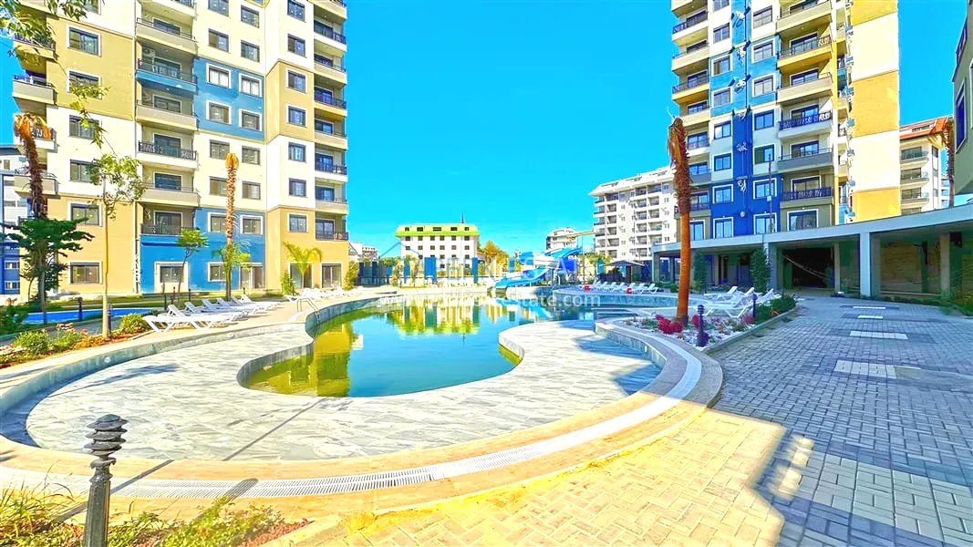 Жилой комплекс занимает просторную охраняемую территорию и состоит из шести многоквартирных блоков. Здесь создан комфортный набор инфраструктуры: бассейн, фитнес-зал, зоны отдыха, озеленение и пространства для спокойного времяпрепровождения. Локация удачная - примерно 1,2 км до моря, рядом супермаркеты, кафе и остановки общественного транспорта.