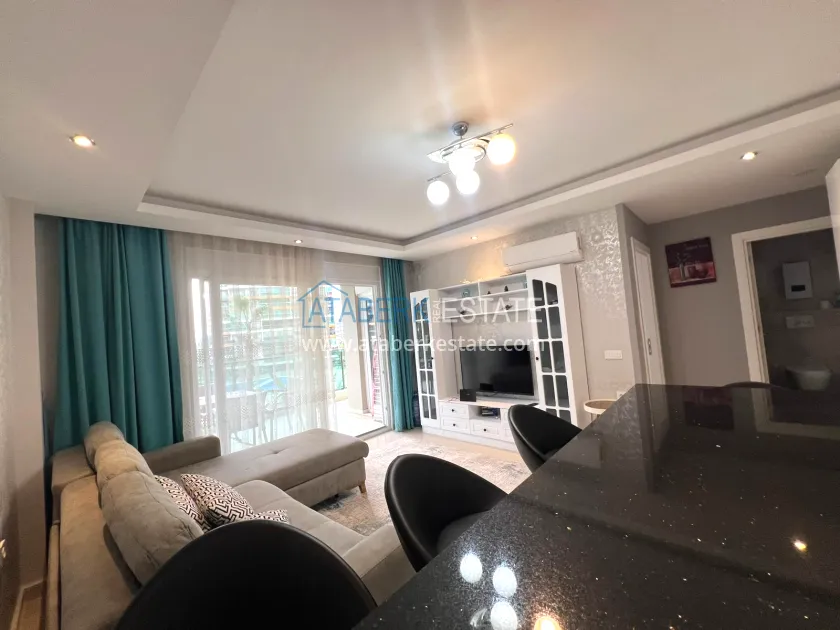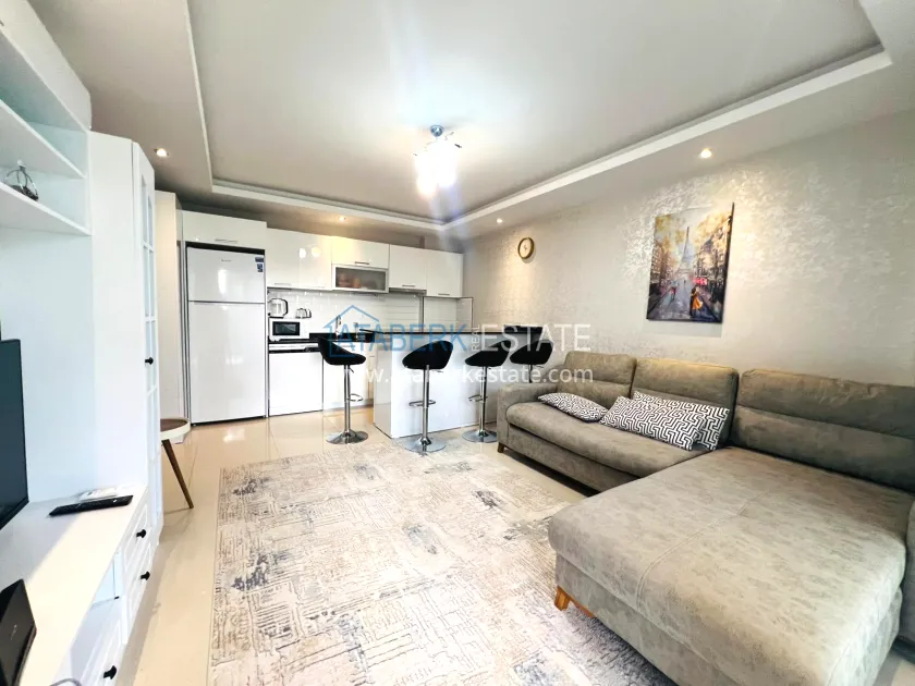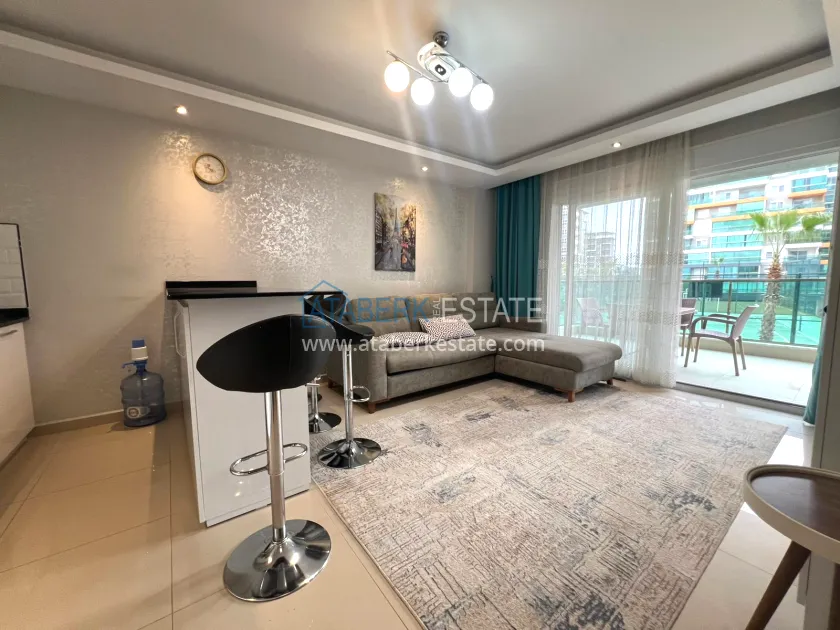Квартира распложена на 2 этаже вид на территорию комплекса. Общая площадь составляет 55 м2, планировка 1+1, которая включает наличие: гостиной, объединенной с кухней американского типа, уютной спальни, совмещенного санузла и балкона. Апартаменты выставлены на продажу со всей мебелью и бытовой техникой – всё как на фото.