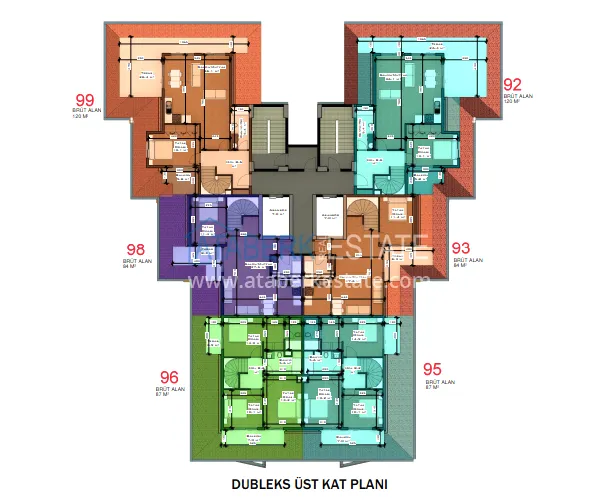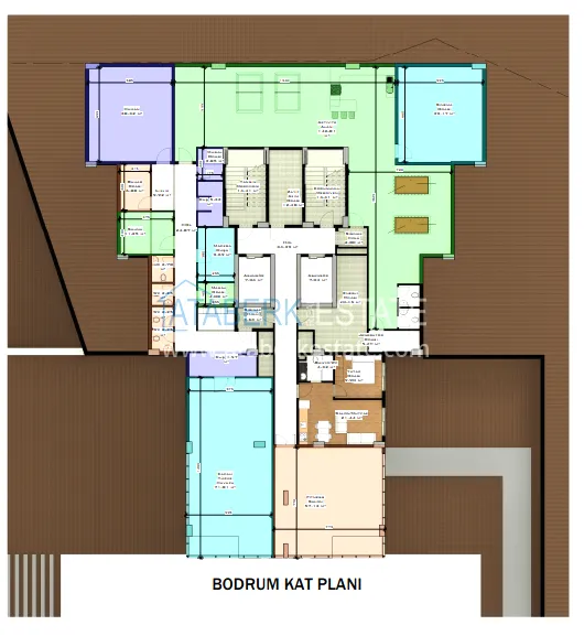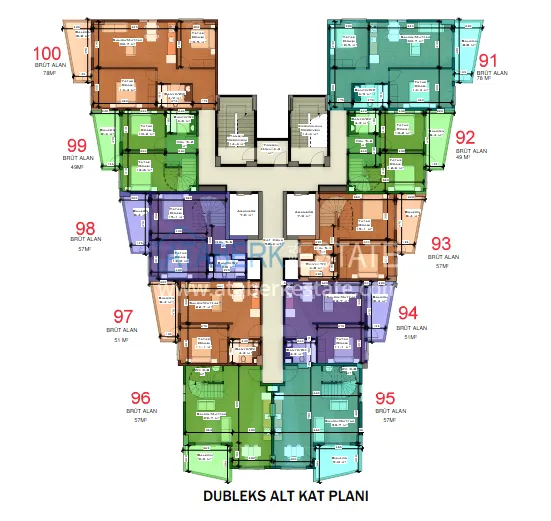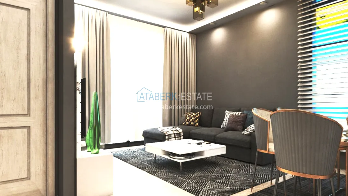 На выбор предложены апартаменты следующих планировок: 1+1 от 49 до 59 м2, 2+1 м2 и дуплексы 3+1 площадью 120 м2. Технические характеристики: качественная чистовая отделка, декорированные подвесные потолки, половое покрытие керамикой и мрамором, двойные стены со звуко-тепло изоляцией, межкомнатные двери, бронированные входные двери, окна с двойным остеклением, интернет и центральная спутниковая система, встроенная кухонная мебель, укомплектованные санузлы, бойлер.