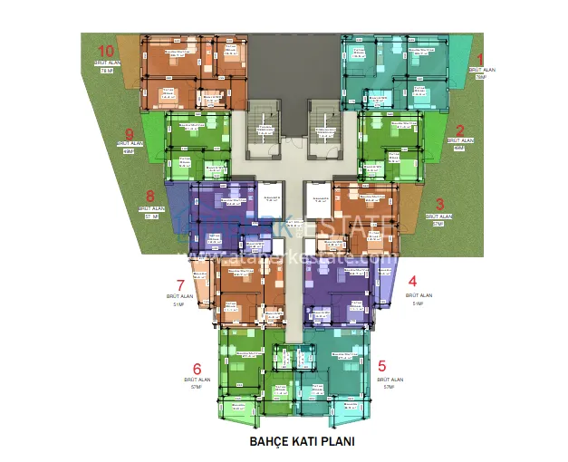 Жилой комплекс расположен в городе Аланьи, районе Авсаллар, недалеко от самого известного пляжа Инджекум – 1,4 км. ЖК построен на участке площадью 5 150 м2 и включает один 10-этажный блок – 100 квартир, а также закрытую благоустроенную территорию с богатой инфраструктурой.
