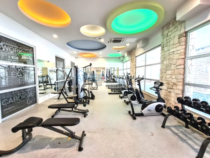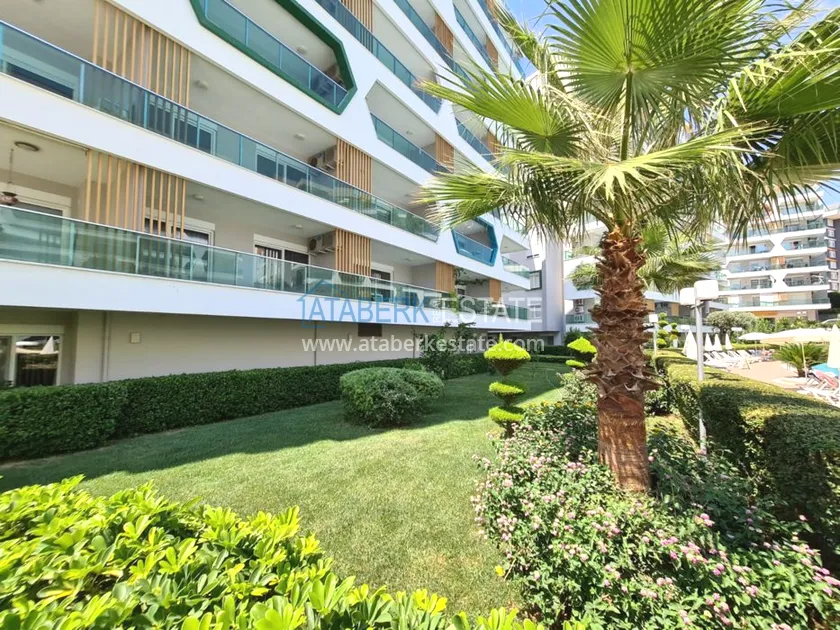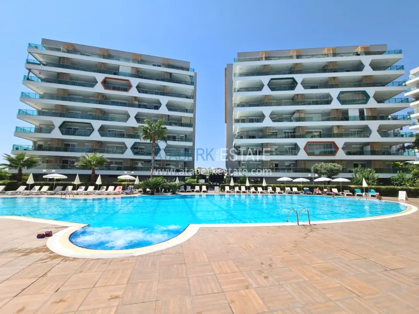 Апартаменты расположены на 4 этаже и ориентированы на юг, общая площадь составляет 110 м2, планировка 2+1 – гостиная, американского типа кухня, две спальни, две ванные комнаты и балкон. В квартире имеются кондиционеры, точечное освещение, водонагреватель, полностью укомплектованные санузлы. С балкона и окон открывается прекрасный вид на море и город.