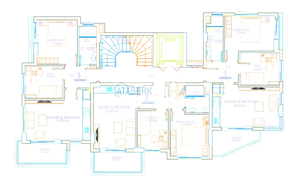 Представлены квартиры планировки 2+1 площадью 60 м2 и пентхаусы планировки 2+1 площадью 108 м2. Апартаменты будут сдаваться с чистовой отделкой, встроенной мебелью на кухне и в прихожей и полностью оборудованными санузлами. Пол керамогранит, окна ПВХ, межкомнатные двери МДФ и стальная входная дверь.