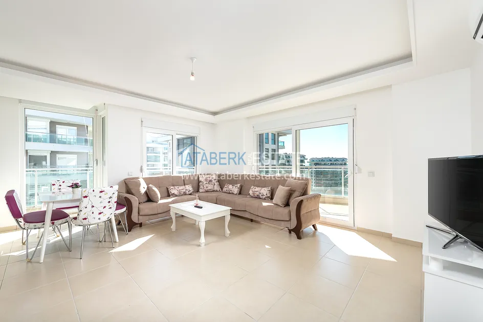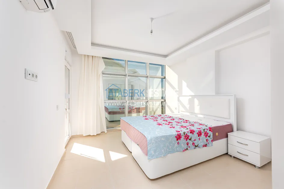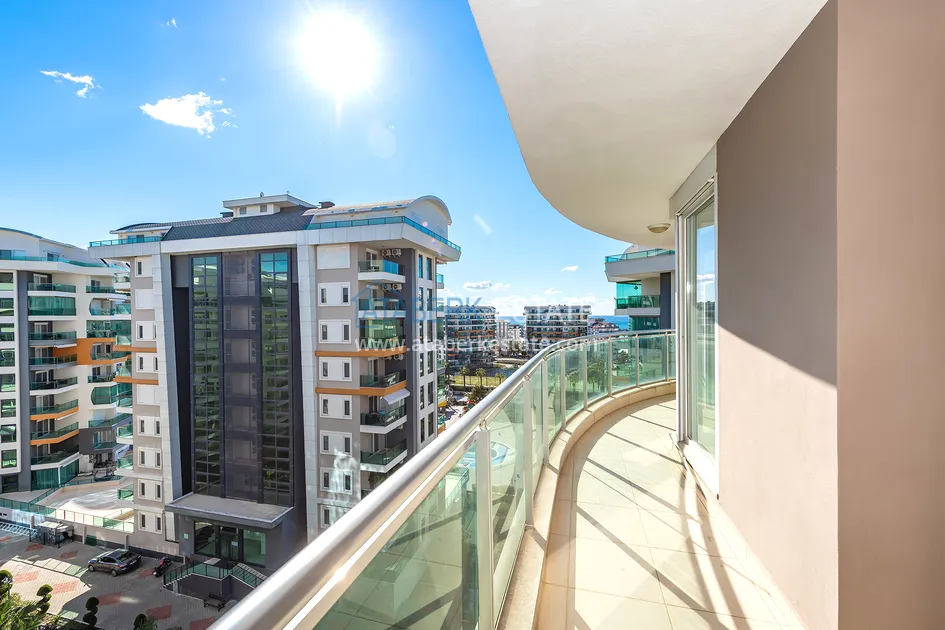 Квартира находится на 8 этаже девятиэтажного дома, общая площадь составляет 101 м2, планировка 2+1, которая предлагает наличие: гостиной, совмещенной с кухней американского типа, двух спальных комнат, двух санузлов и большой балкон с потрясающим видом на море. Из больших панорамных окон также открывается завораживающий вид на горы и море. Квартира выставлена на продажу со всей мебелью и техникой, все как на фото.