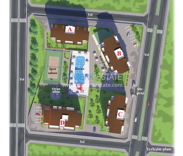 Жилой комплекс расположен на охраняемой огороженной территории, где действует полный набор услуг. Состоит из четырех 7-этажных блоков. От комплекса идет прямая дорога к собственному пляжу, примерно 6 минут прогулочным шагом. А при наличии клубной карты комплекса, вы сможете пользоваться, бесплатно, шезлонгами и зонтиками пляжа Инджекум в заливе Фула, который находится всего в 550 метрах от дома.