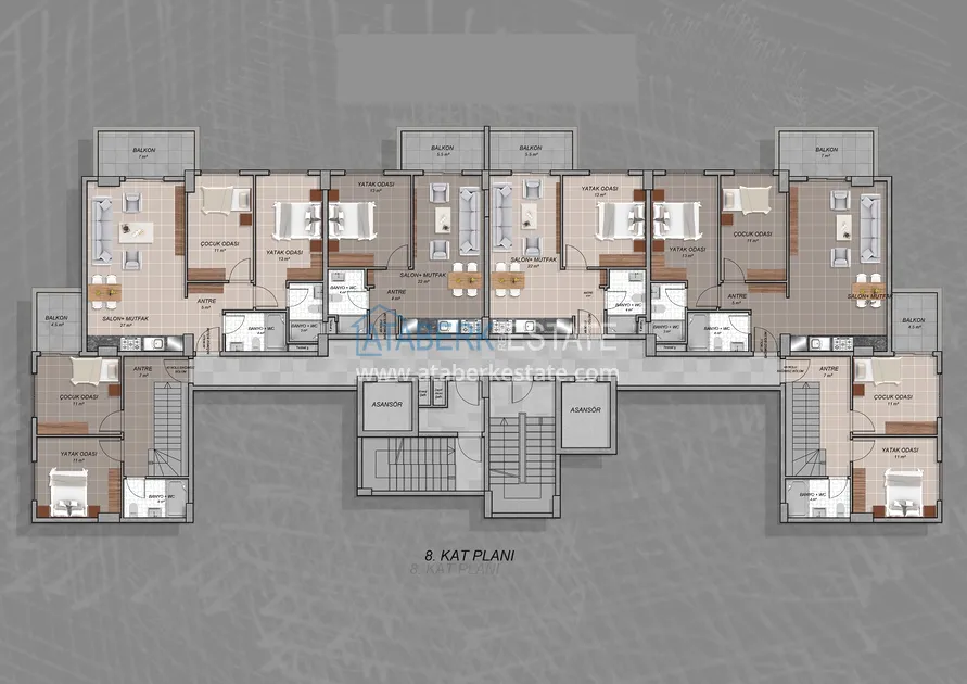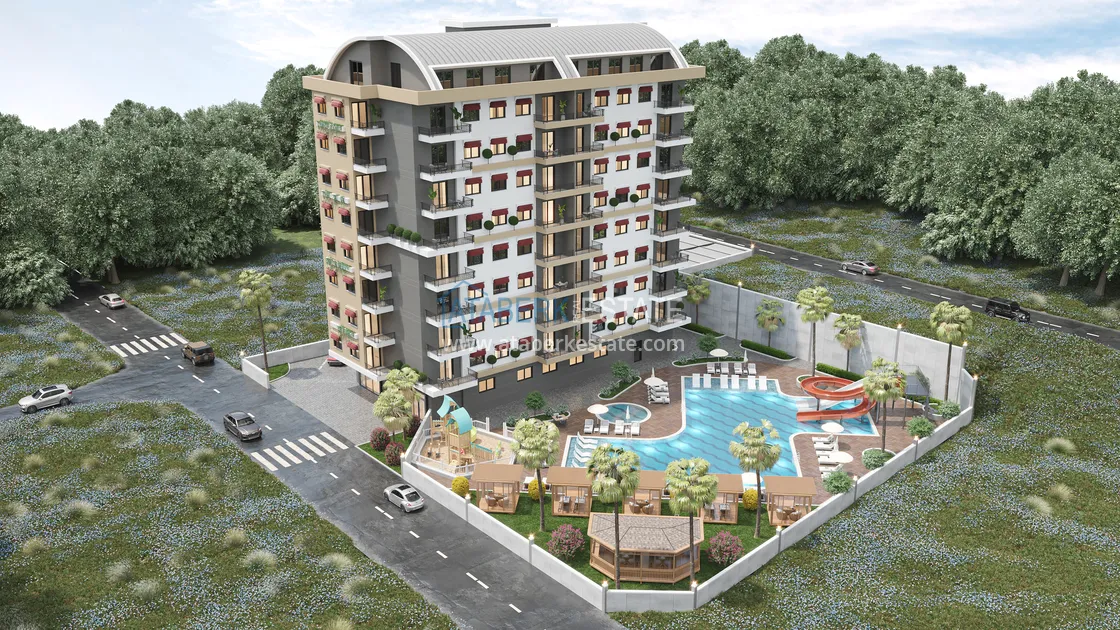 В курортном пригороде Алании на расстоянии 1,8 км от Средиземного моря на участке площадью 3 000 м2 расположилась комфортабельная резиденция с самодостаточной инфраструктурой. ЖК включает один 8-этажный блок плюс мансардная крыша и закрытую благоустроенную территорию. На выбор представлены два варианта планировок: двухкомнатные 1+1 и пентхаусы 5+1. В стоимость всех квартир входит: полная чистовая отделка, корпусная кухонная мебель и укомплектованные санузлы. Также к продаже представлена коммерческая недвижимость площадью 190 м2.