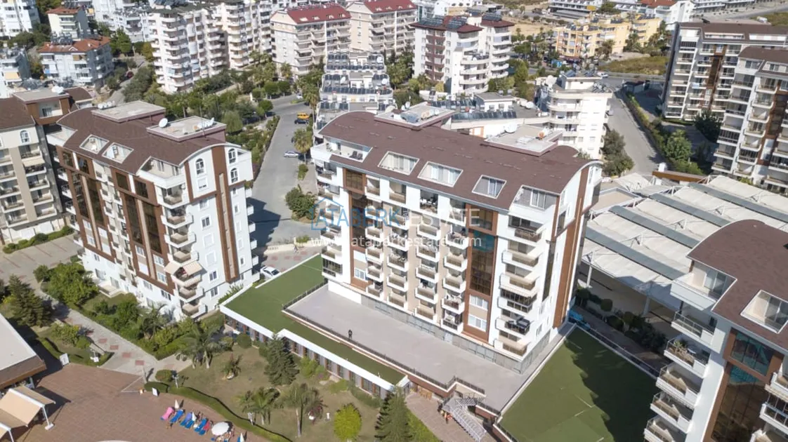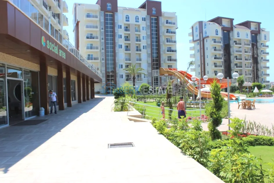 Апартаменты расположены в шикарном комплексе, состоящем из 10 блоков и большой территории. Для жителей предусмотрена богатая инфраструктура, чтобы ваше проживание было максимально комфортным. Расположен комплекс очень удачно, как относительно моря, так и городской инфраструктуры. В шаговой доступности есть магазины, рестораны, аптеки, банкоматы и т. д. Примерно в 6 минутах находится один из лучших песчаных пляжей побережья – Инджекум.
