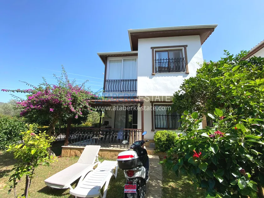 Жилой комплекс находится на охраняемой территории в окружении леса и гор. В комплексе большая территория и много зелени. Вилла имеет два этажа и планировку 3+1. На площади в 135 м2 разместились: уютная гостиная, которая совмещена с зоной кухни, три спальные комнаты, два санузла (гостевой на первом и ванная комната на втором), есть застекленный балкон и садовая терраса с местом для барбекю.