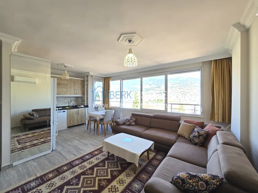 Квартира планировки 1+1 с общей площадью 74 м² — это редкое сочетание просторного жилого пространства и удобной локации. Она расположена на третьем, последнем этаже и ориентирована на северо-восток и запад. Внутреннее пространство квартиры продумано до мелочей: просторная гостиная наполняется естественным светом благодаря большому панорамному окну, открывающие потрясающий вид на город, величественные горы и даже частично на бескрайнее море. Уютная спальня с выходом на застекленный балкон, откуда можно любоваться горными пейзажами в любое время суток. Дополняет удобную планировку совмещенный санузел. Квартира продается с мебелью и полностью готова к проживанию. В интерьере использованы качественные материалы: во всех комнатах на полу уложен ламинат, что придает помещению тепло и уют.