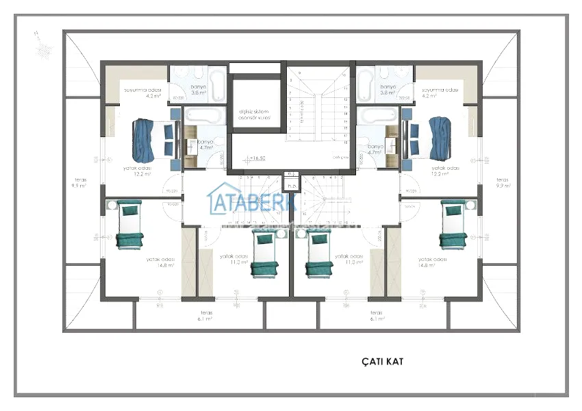 Компания недвижимости в Турции AtaberkEstate предлагает вашему вниманию четырехкомнатные пентхаусы в центре города Алании, в шаговой доступности от популярного пляжа Клеопатры с мелким, бархатным песком! Отличное месторасположение данного комплекса является безусловным преимуществом нашего предложения, к тому же неоспоримым плюсом для наших покупателей будет - рассрочка платежа!