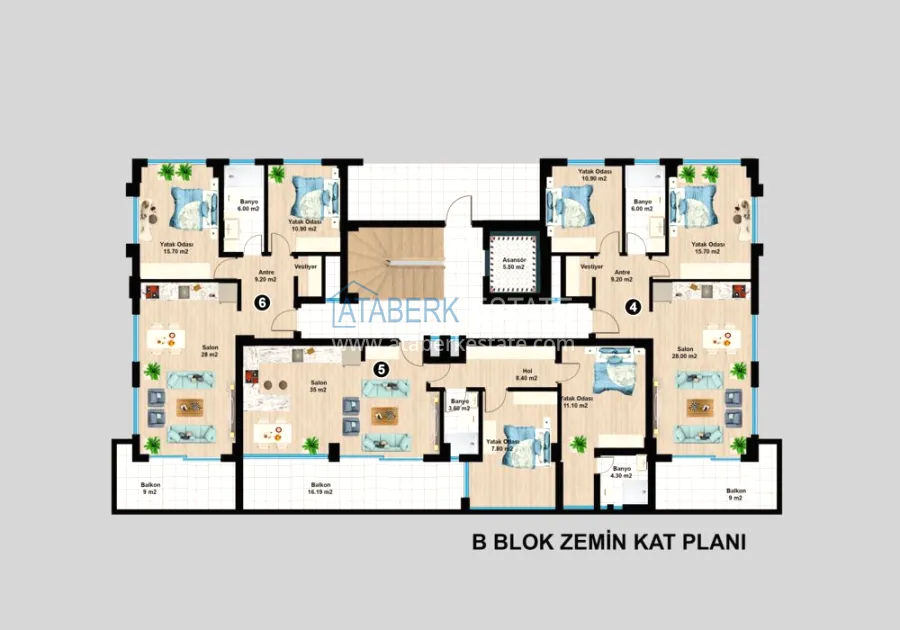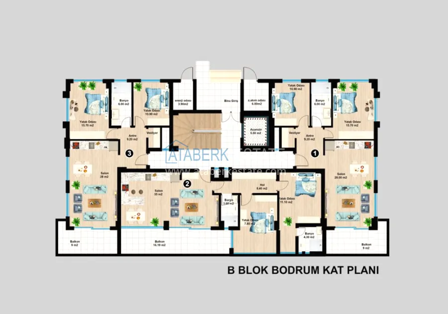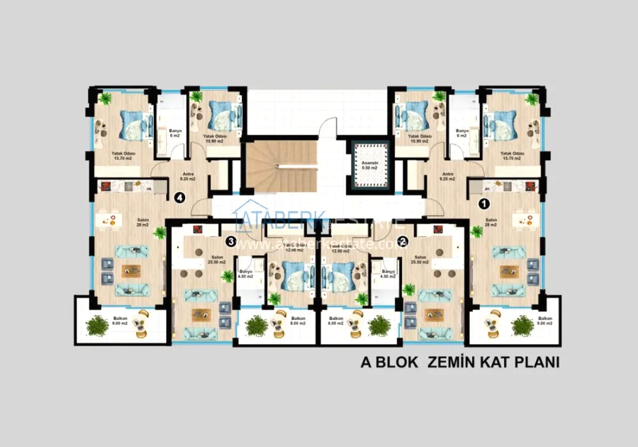 В продаже остались квартиры планировки 3+1 площадью 174 м2. В стоимость включена полная чистовая отделка, встроенная кухонная мебель, кондиционеры в каждой комнате, укомплектованные санузлы и система «теплый пол».