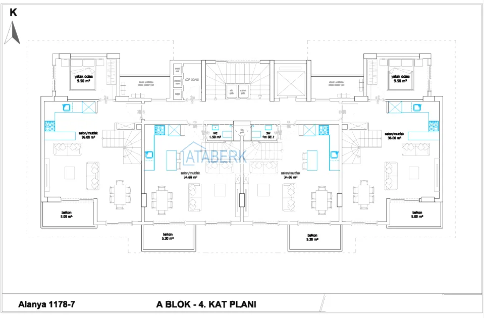 На выбор предложены апартаменты следующих планировок: 2+1 площадью 68 м2 и дуплекс-пентхаусы с двумя и тремя комнатами 2+1, 3+1 площадью 91 и 166 м2. В квартирах: стальные двери, домофон с видеосистемой, подвесные потолки и точечное скрытое освещение, моющаяся краска на стенах и полах из гранита первого класса. Фарфор, керамика и разработка дизайнеров кухонь и ванных комнат. ПВХ окна и двери на балкон с двойным остеклением и шумоизоляцией.