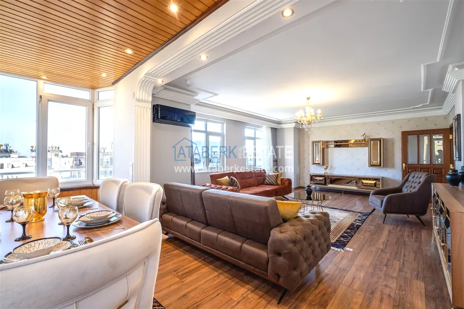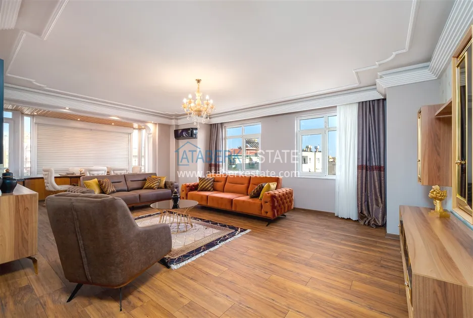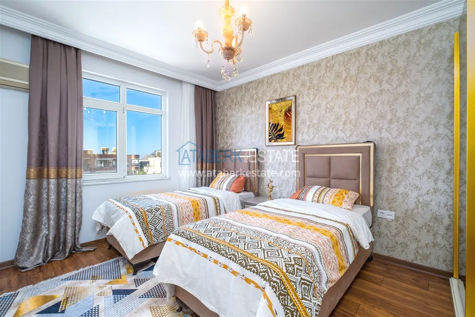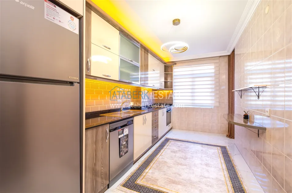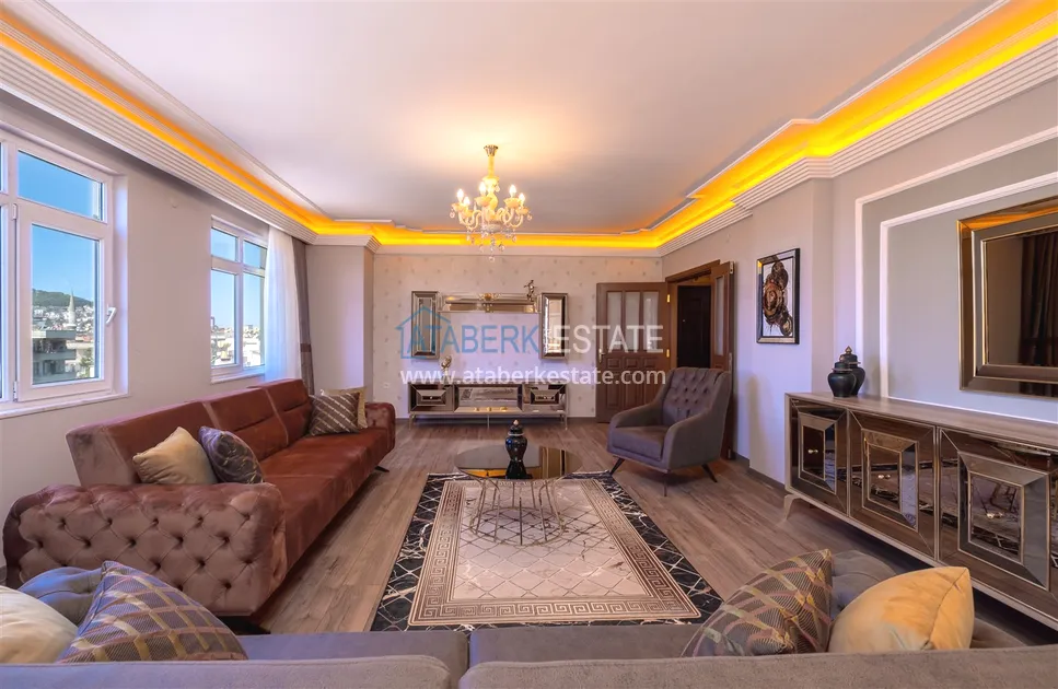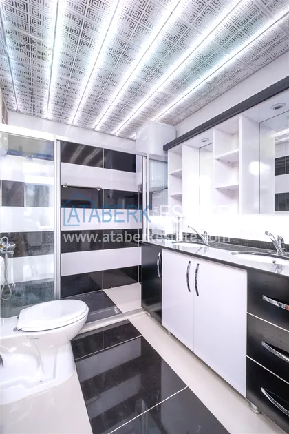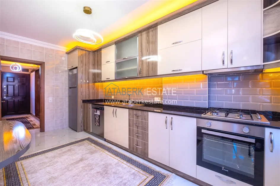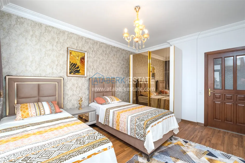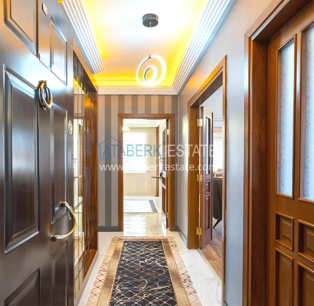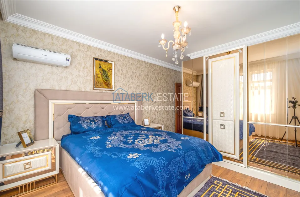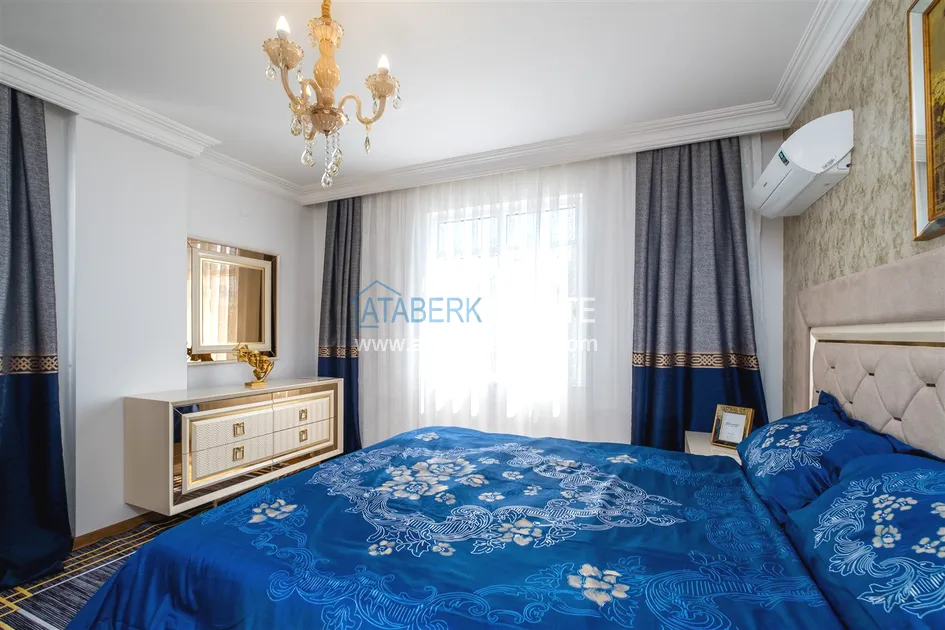 Компания Ataberk Estate рада представить уютную квартиру с тремя спальнями и современным интерьером в жилом комплексе с красивой ухоженной территорией в тихом центр Алании.