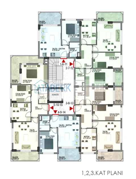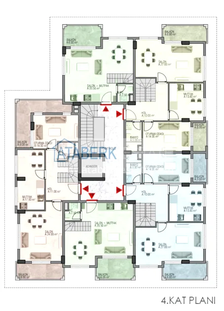 Всего в проекте 20 апартаментов и 4 коммерческих помещения. На выбор представлены следующие варианты планировок – двухкомнатные 1+1 площадью 50 м2, трехкомнатные 2+1 площадью 88 м2, пентхаусы 2+1 и 4+1 площадью 108 и 180 м2. А также торговые помещения площадью от 50 до 75 м2. В стоимость включена полная чистовая отделка, встроенный кухонный гарнитур и укомплектованные санузлы.