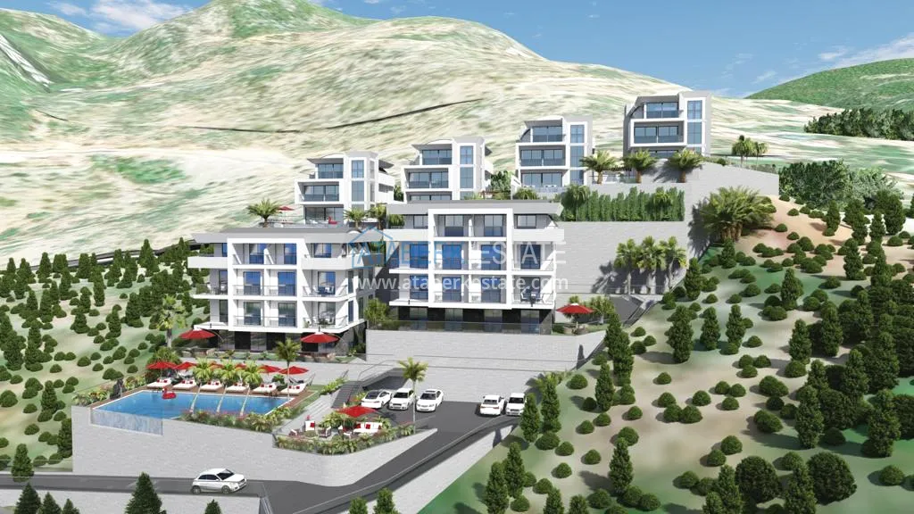 Всего в проекте 8 апартаментов с видом на море, горы, городские окрестности, бассейн и окружающую природу. Квартиры планировки 4+1 площадью 148,25 и 150,8 м2 – два уровня, 4 спальни, салон, открытого типа кухня, 2 ванные комнаты и один балкон. На верхних дуплексах еще предусмотрена открытая терраса.