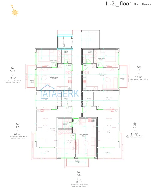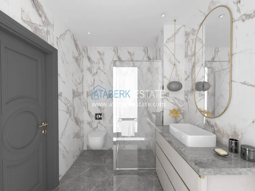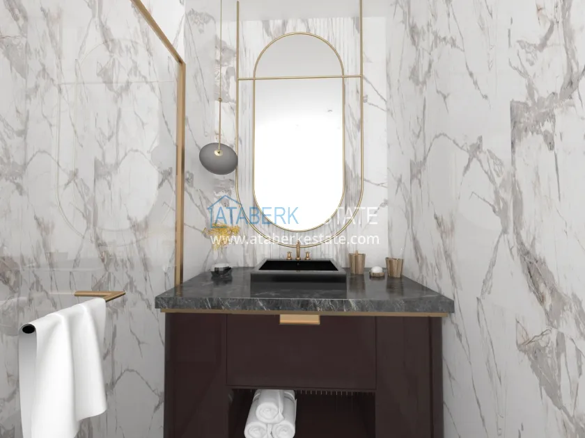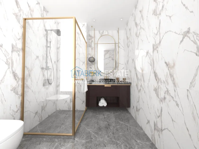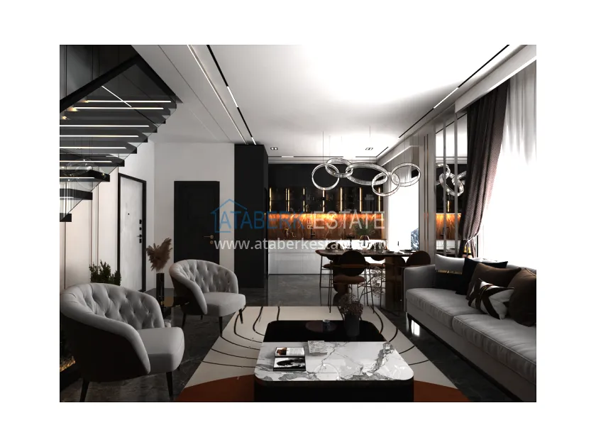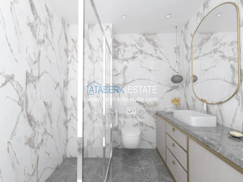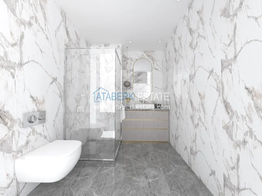 Характеристики квартир: керамический пол во всех комнатах, встроенное точечное освещение, светодиодное освещение на кухонном гарнитуре, полностью оборудованные ванные комнаты, интерком, современные кухонные гарнитуры, окна с двойным остеклением, качественные стальные входные двери.