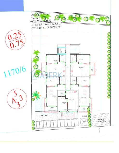 Общая площадь участка составляет 902 м2. Территория комплекса будет огорожена, и охраняться круглосуточно. По периметру будут высажены декоративные деревья и кусты. Одной из ключевых концепций проекта является использование высококачественных и дорогих строительных материалов. В комплексе будет один блок в стиле хай-тек на 15 квартир с панорамными окнами. В рамках проекта представлены квартиры площадью 1+1 от 57 до 61 квадратных метров, а также пентхаусы 2+1 с площадью 113-122 квадратных метров. Благодаря тому, что резиденция строится на возвышенности каждая квартира, включая первый этаж, будет иметь потрясающий вид на море.