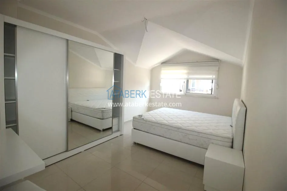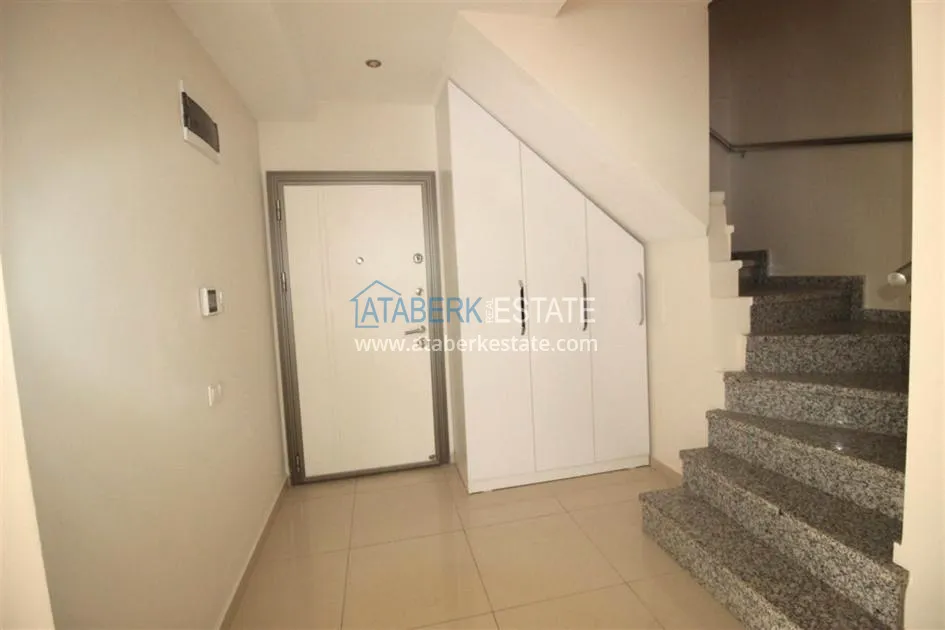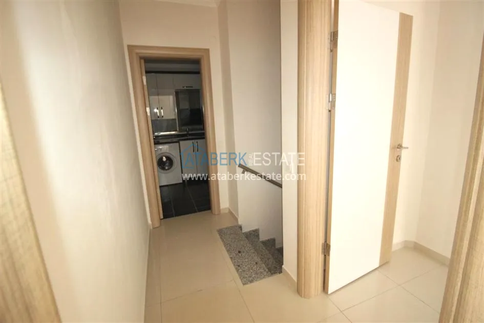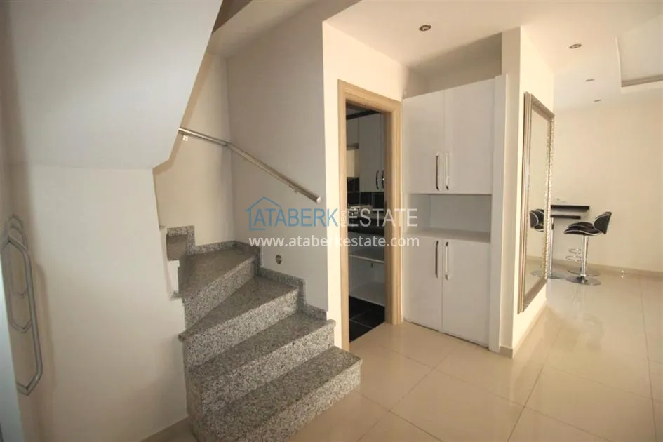Компанией Ataberk estate предлагает посмотреть вам дуплекс с двумя спальнями. На первом этаже кухня-гостиная с широким балконом, гостевой туалет, на втором; две большие спальни, ванная комната и еще один широкий балкон.