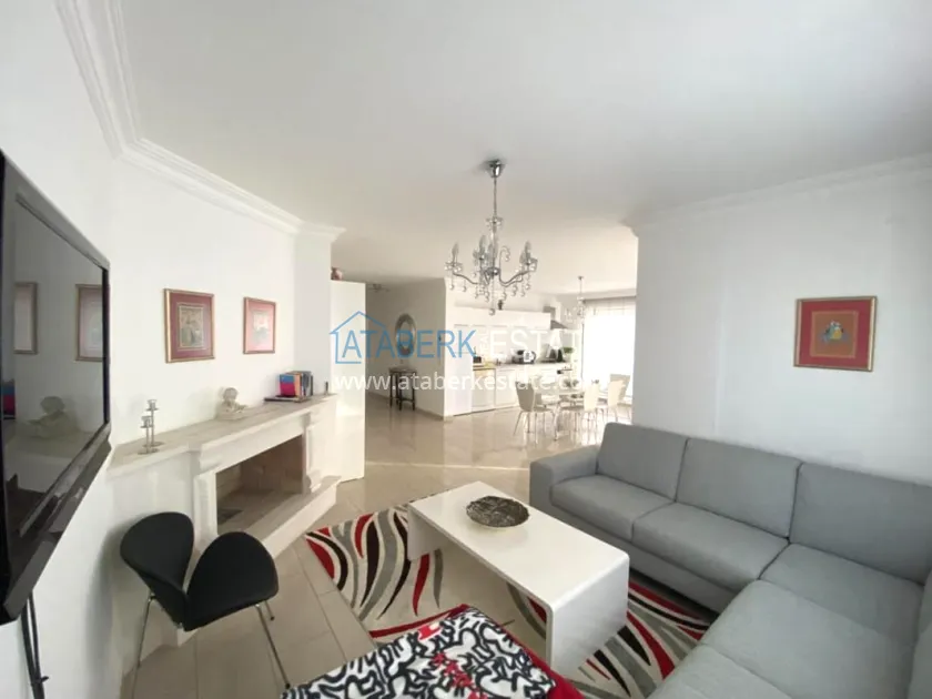 Предлагаемая недвижимость находится в четырехэтажном жилом доме с минимальной инфраструктуры. Квартира двухуровневая планировки 4+1 площадью 225 м2, этаж расположения верхний 4-й, окна выходят на север, восток, запад и юг – вид открытый на море, горы и городские окрестности. В квартире: салон, американского типа кухня, 4 комнаты, 2 санузла, 3 балкона. Апартаменты выставлены на продажу в том виде, который представлен на фото – мебелью, бытовой техникой и предметы быта.