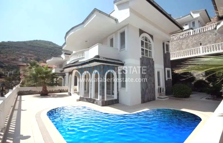 Прекрасное предложение – двухэтажный загородный коттедж с частной территорией и бассейном, расположенный на склоне гор в районе Сюгозю, напротив центра Алании.