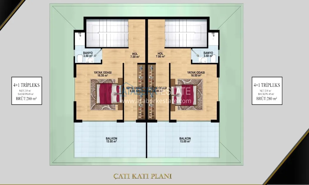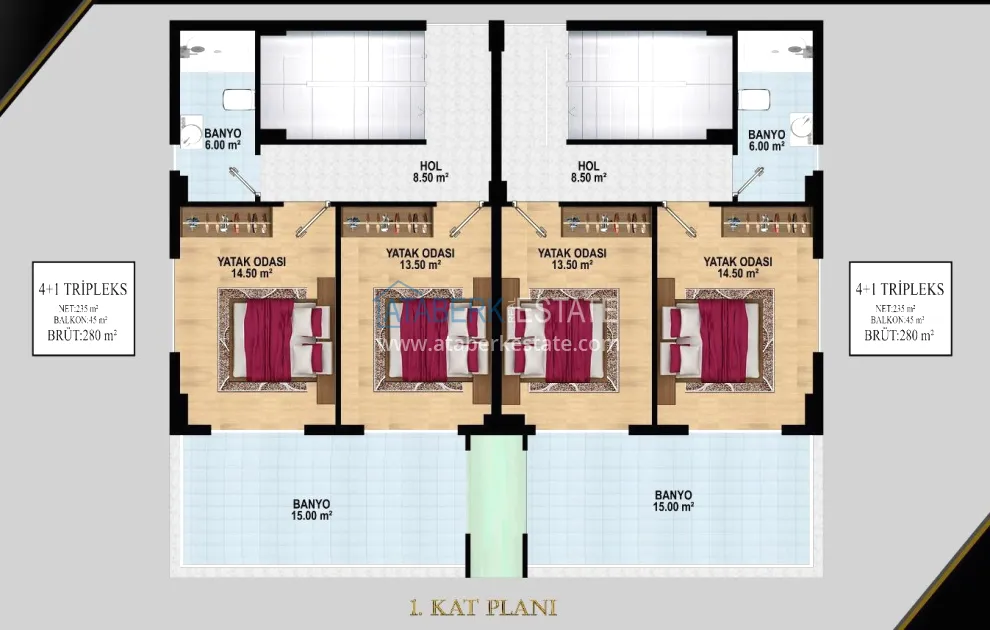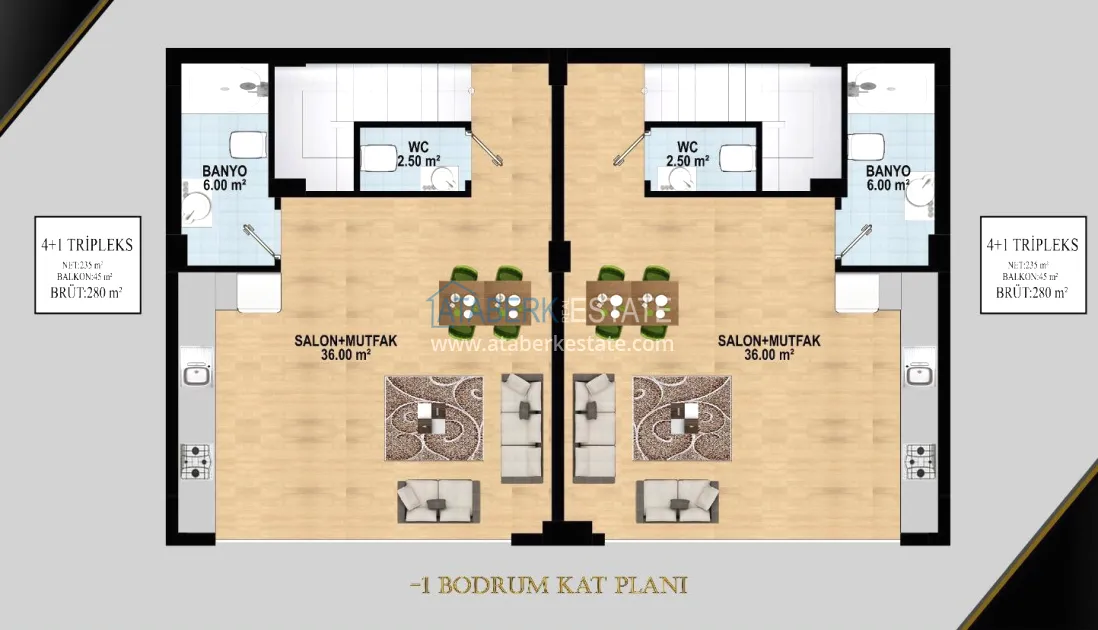 Вилла смежная, к продаже представлена одна из частей площадью 280 м2, планировки 3+2 – три спальни, две гостиные с кухнями американского типа, три санузла, два балкона. В стоимость включено: полная чистовая отделка, встроенная кухонная мебель, укомплектованные санузлы.