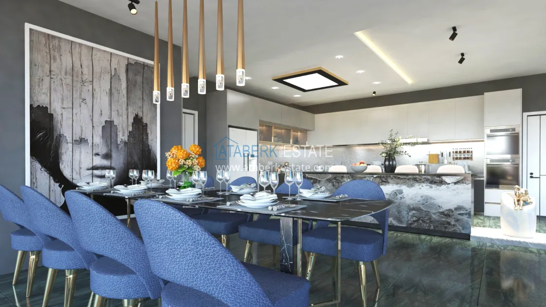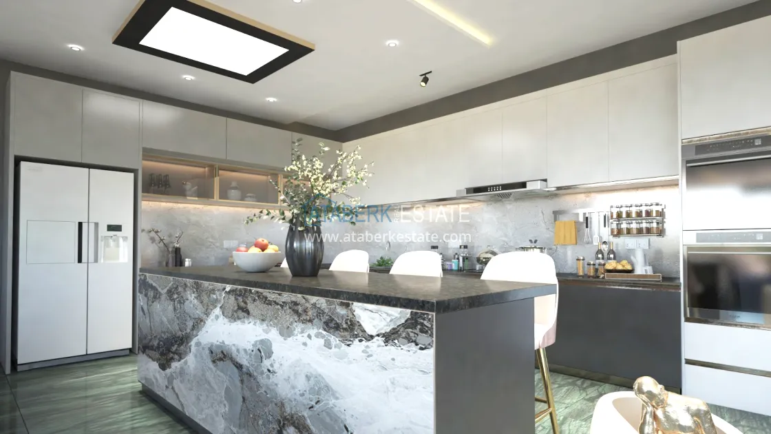 Это будет шикарная, трехуровневая, просторная вилла с бассейном, хорошей инфраструктурой и великолепными видами. Планировка предполагает наличие 3 спальных комнат (каждая с личной ванной комнатой), а также гостиная, 2 кухни, столовая, 2 балкона и терраса. Всего в проекте предусмотрено 5 санузлов. На цокольном этаже – комната отдыха, сауна, хамам и кинотеатр. Также проектом предусмотрены открытый плавательный бассейн, площадка для барбекю, сад и гараж. В стоимость включена высококачественная финишная отделка, кухонный гарнитур и полностью укомплектованные ванные комнаты. Также будет установлена система «Умный дом», центрального кондиционирования и отопления, электро-жалюзи на окнах, видеодомофон, а также пол с подогревом.