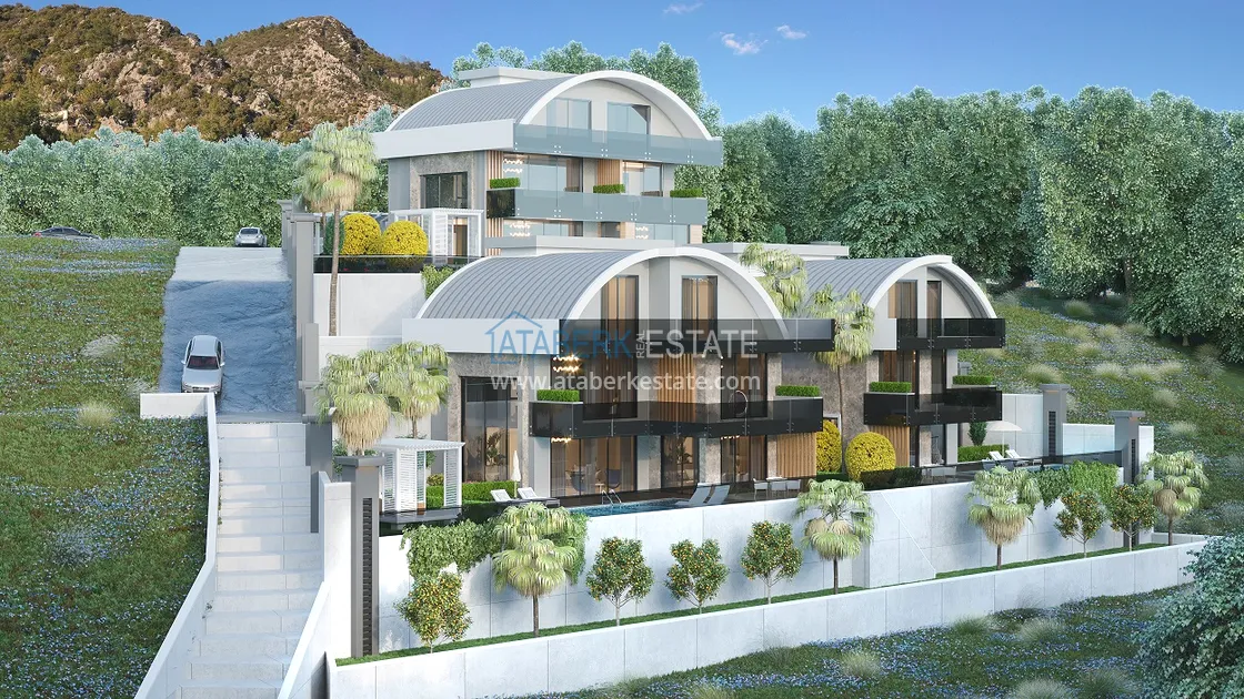 Комплекс состоит из трех отдельно стоящих вилл. Каждая вилла имеет частную территорию, личный бассейн, сад, местом для отдыха и крытую парковку. Все виллы трехэтажные, планировки 5+1 площадью 404 и 346 м2. На данной площади разместились: салон с камином, американского типа кухня, 5 спален, 4 ванные комнаты, джакузи с видом на море, гардеробные, прачечная. В стоимость включена: полная и качественная чистовая отделка, встроенная кухонная мебель, система «Умный дом», система отопления, полностью укомплектованные санузлы, электро жалюзи на окнах, система кондиционирования, центральная спутниковая система и лифтовая система. В строительстве данного проекта используются материалы высшего качества. Также для каждой виллы предусмотрен фитнес, сауна и зона для барбекю – расположенные за пределами виллы.