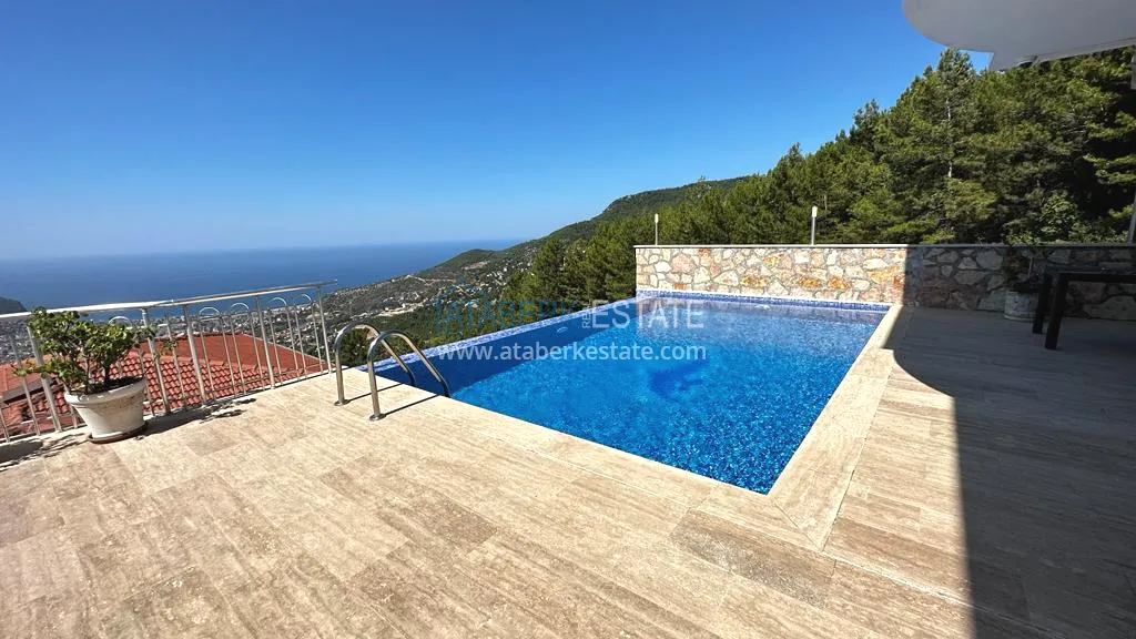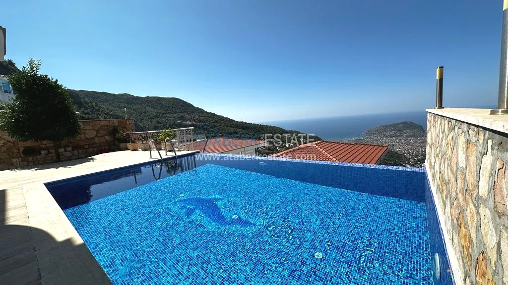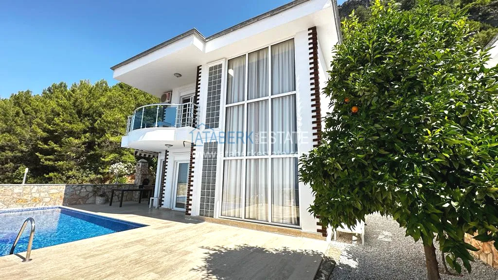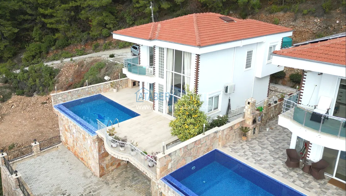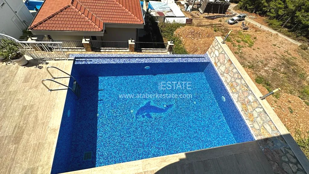 Прекрасное предложение – двухэтажный загородный коттедж с частной территорией и бассейном, расположенный на склоне гор в районе Тепе, Алания!