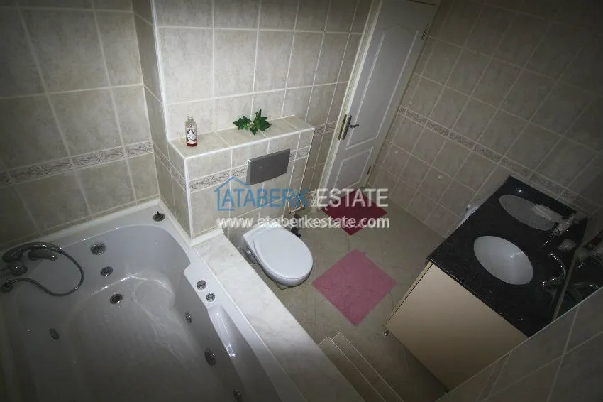 Квартира 2+1, площадью 90м2 расположена на четвертом этаже, из гостиной открывается прекрасный вид на Средиземное море и крепость Алании. Квартира смотрит на юг и восток, что делает ее солнечной и теплой. Планировка квартиры представляет собой салон объединённый с кухней, две спальные комнаты, ванная комната и балкон.
