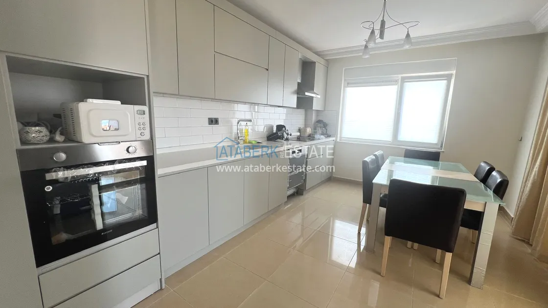 Квартира планировки 2+1 находится на 6 этаже, общая площадь составляет 120 м2. В планировку входит: салон, совмещённый с кухней открытого плана, две спальни, две ванные комнаты и застеклённый балкон. Продаётся в том виде, в каком представлено на фото.
