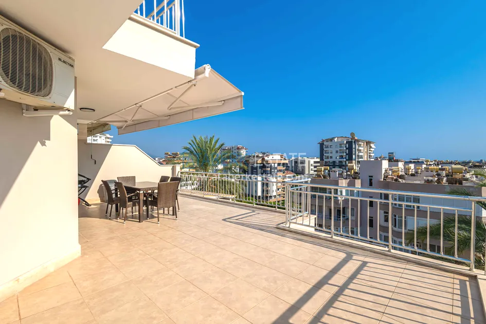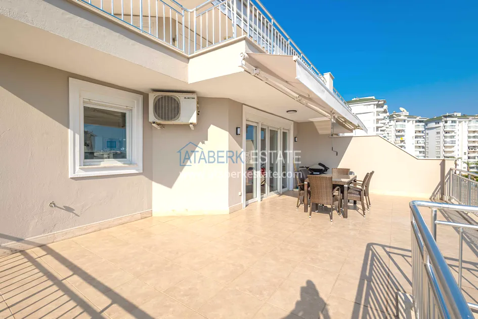 Предлагаемая трёхкомнатная квартира, расположенная на турецком 3-м этаже (фактически - 4-й). Общая площадь - 110 м2, включая просторную гостиную с зоной кухни открытого типа, две спальни, два санузла и большую террасу, заменяющую стандартный балкон. Пространство отлично зонировано, а выход на открытую террасу делает квартиру особенно привлекательной как для жизни, так и для отдыха. Квартира на фото представлена с мебелью, однако в продажу она выставлена только с бытовой техникой и кондиционерами - продаётся без мебели. В квартире выполнен косметический ремонт.