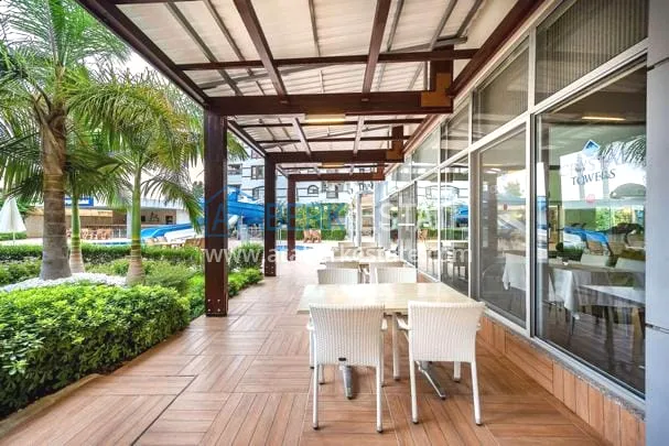 Резиденция состоит из двух 9-этажных корпусов и занимает большую закрытую территорию, на которой создано комфортное пространство для проживания. Территория тщательно ухожена, организованы прогулочные зоны, места отдыха и элементы инфраструктуры, рассчитанные на круглогодичное использование. Комплекс отличается практичным расположением - здесь можно жить, не испытывая необходимости постоянно пользоваться транспортом. Всего в 200 метрах находится ТЦ Alanyum, а в радиусе 400 метров - сетевые супермаркеты Migros, Koçtaş, A101, Bim, фитнес-зал, пекарни, аптеки и сервисные учреждения. До ТЦ METRO - примерно 12 минут пешком. До моря - около 800 метров, путь займёт 10–12 минут прогулочным шагом. Транспортная доступность отличная: рядом объездная дорога и удобные маршруты в центр.