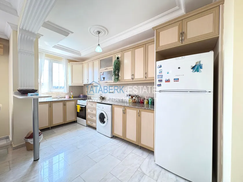 Квартира площадью 105 м2 расположена на 6 этаже и ориентирована на южную и северную стороны, благодаря чему в помещениях сохраняется комфортный световой баланс в течение дня. Планировка 2+1 включает салон с кухней открытого типа, две спальни, два балкона, один из которых смотрит на городские виды, а также два санузла, один совмещённый и один при хозяйской спальне. Квартира продаётся с мебелью: всё аккуратно подобрано и позволяет заселиться сразу же после покупки.