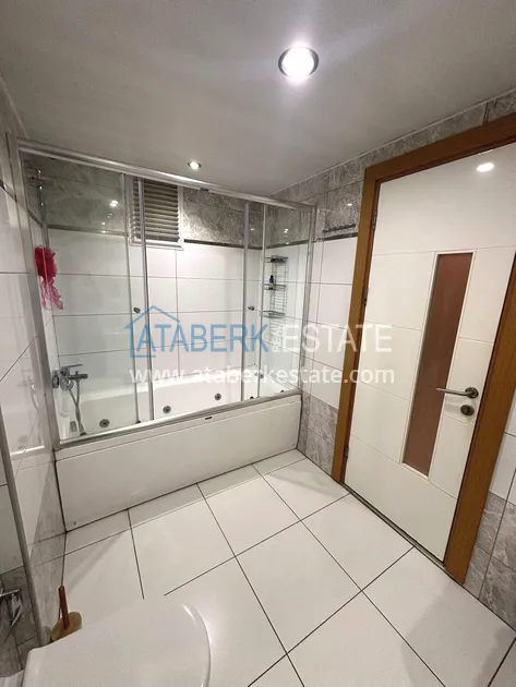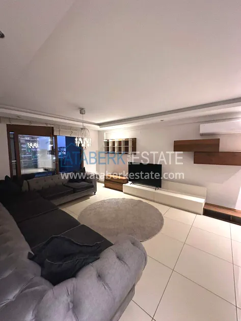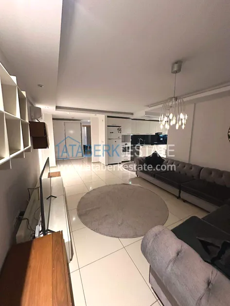 Квартира планировки 2+1 расположена на 5 этаже, общая площадь составляет 120 м². Угловое расположение и ориентация на восток, север и запад обеспечивают хорошее естественное освещение и циркуляцию воздуха в течение дня. В планировке предусмотрены салон с кухней открытого типа, две спальни, два санузла и два балкона. Квартира продаётся меблированной, пространство аккуратное и готово к проживанию без дополнительных вложений.