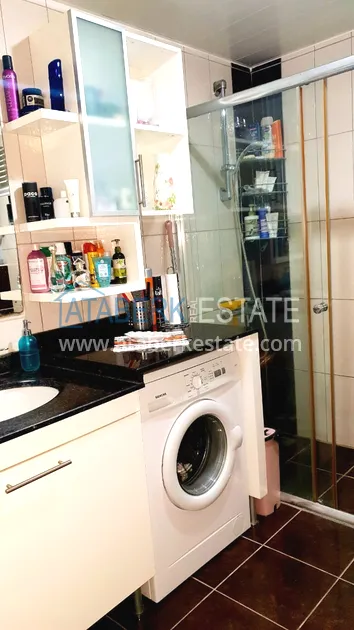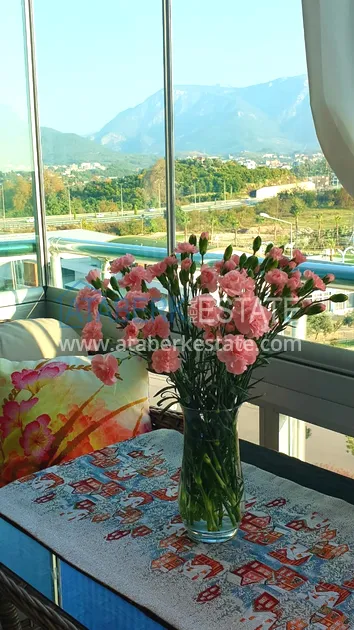Квартира планировки 1+1 находится на втором турецком этаже (по факту третий), ориентирована на восток, общая площадь составляет 75 м2. На данной площади разместились: салон, совмещённый с кухней открытого плана, спальня, ванная комната и застеклённый балкон с прекрасным видом на горы и апельсиновые рощи. Также есть гардеробная, на полу уложен ламинат. Продаётся в том виде в каком представлено на фото.