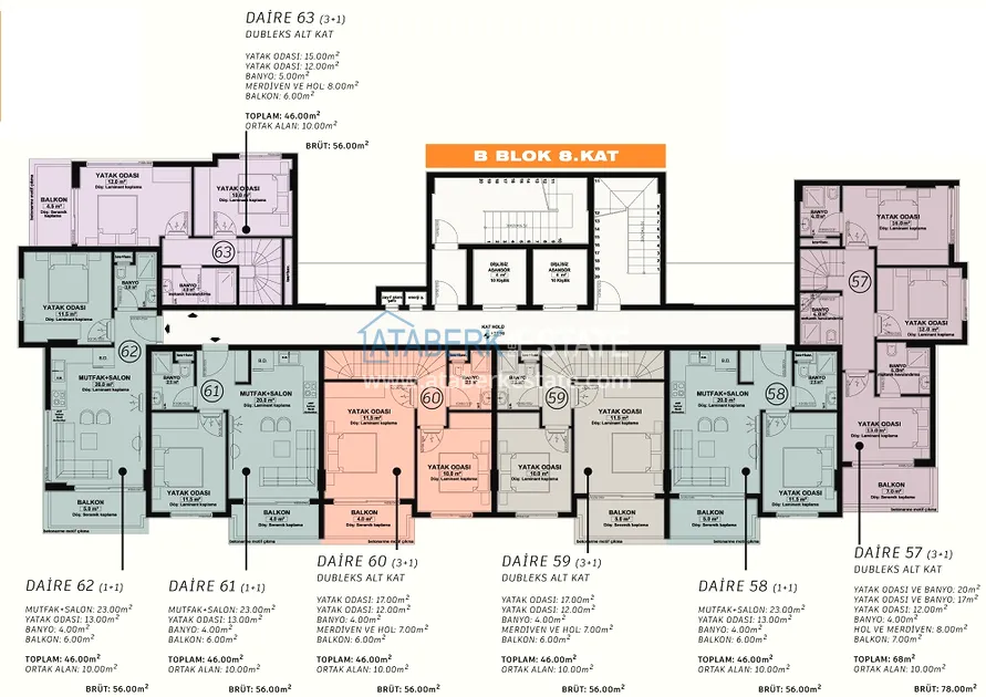 На продажу предлагаются квартиры следующей планировки: 1+1 площадь 46 м2, 2+1 площадь 65 м2 и пентхаусы 3+1 площадью 140 м2. Преимущества: живописные виды из окон на море, реку и горы, а также современное оформление жилых пространств и качественная отделка самыми современными материалами. Данные апартаменты станут прекрасным вариантом для любителей пляжного отдыха, желающих проводить время, пользуясь всеми удобствами современного жилого комплекса.