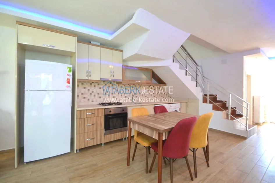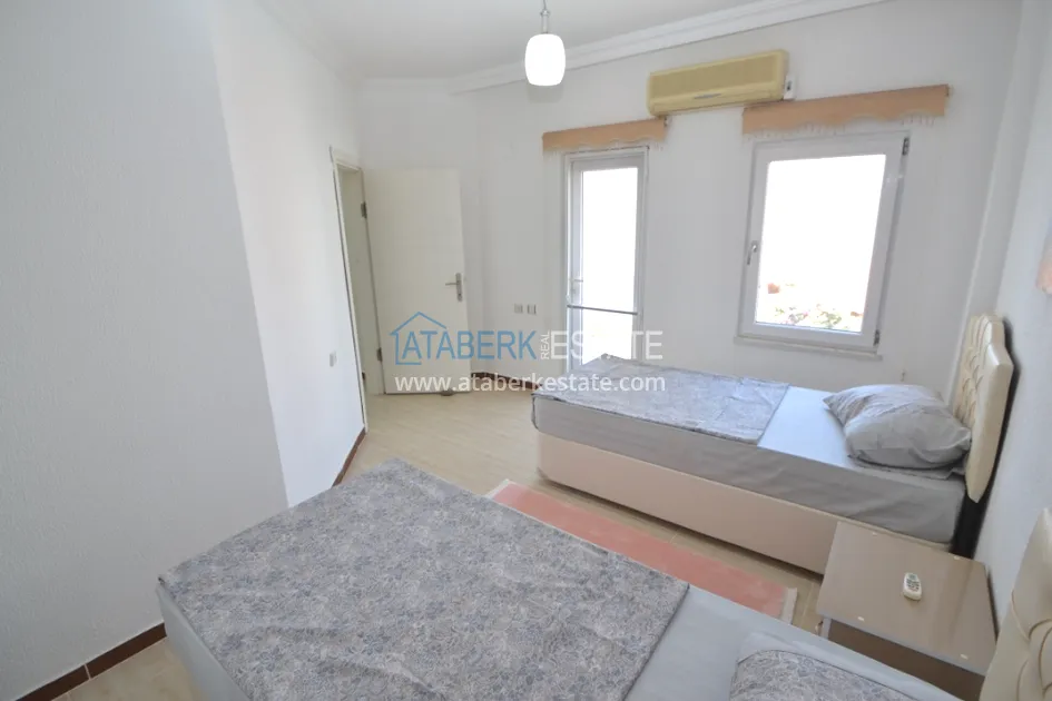 Вилла имеет общую площадь 120 м2 и планировку 2+1 – две спальни, гостиная, совмещенная с кухней открытого плана, две ванные комнаты и два балкона, с которых открывается красивый вид на море и территорию комплекса. Также на первом этаже есть крытая терраса с выходом в сад и открытая терраса на крыше. В стоимость включена вся мебель и техника, как на фото.