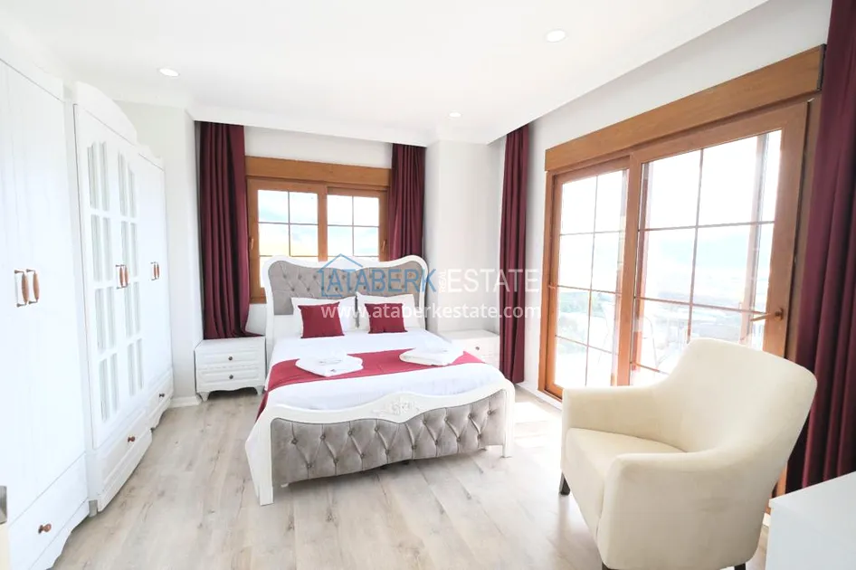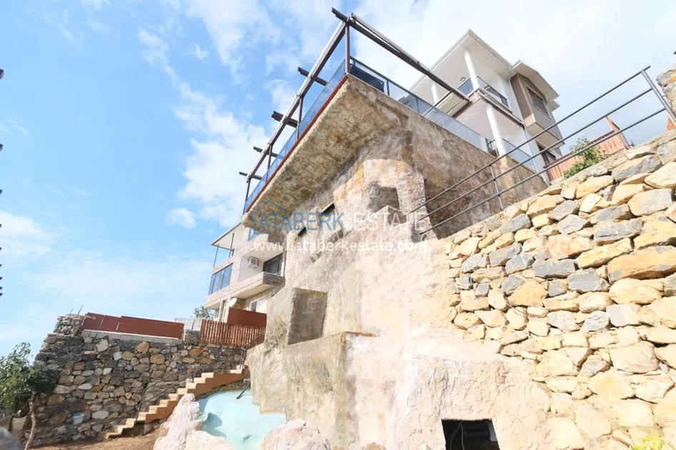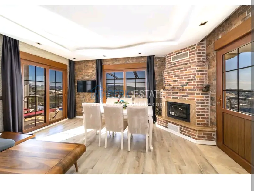 Стильная отдельно стоящая двухэтажная вилла имеет планировку 4+1, общая площадь составляет 160 м2, располагает частной территорией 450 м2 – бассейн, зона для загара, видовая беседка. На двух уровнях виллы разместились: уютная гостиная с камином и кухней американского типа, 4 спальни, 2 ванные комнаты и 2 балкона. Дом выставлен на продажу со всей мебелью и бытовой техникой – всё как на фото. Во всех комнатах на полу уложен ламинат и установлены кондиционеры, ванные комнаты полностью укомплектованы, установлена вся сантехника и проведены все коммуникации. Дом полностью готов для жизни!