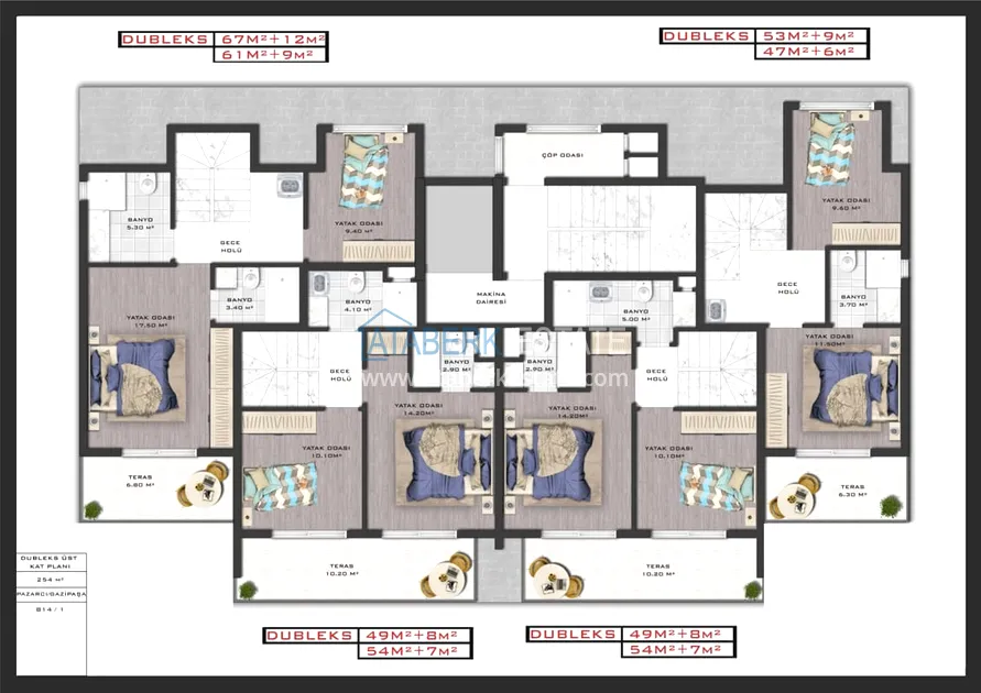 В проекте два блока по 6 этажей, всего 48 апартаментов. Также будет располагать закрытой территории с внутренней инфраструктурой. К тому же проект имеет и хорошее месторасположение - рядом с центром города и основной прогулочной улицей, ведущей к морю. До побережья Средиземного моря 1,2 км. Комплекс строится на участке площадью 2 447 м2.