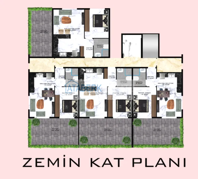 Резиденция возводится в 200 метрах от центра города, на расстоянии 2,5 км от набережной. Проект представлен одним 4-этажным домом на 16 квартир. Это будет современный жилой комплекс с хорошей инфраструктурой. На продажу представлены квартиры следующих планировок: 1+1 с выходом в сад площадью 49 м2 + сад 20 м2, стандартные 1+1 площадью 60 м2, 2+1 площадью 61 и 62 м2, а также дуплексы 2+1 и 3+1 площадью 109 и 137 м2. В стоимость уже включена: полная чистовая отделка, встроенная кухонная мебель, стальная входная дверь и укомплектованные санузлы.