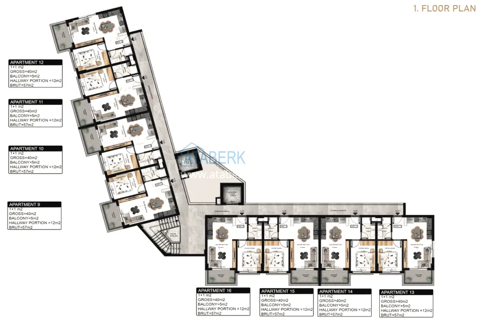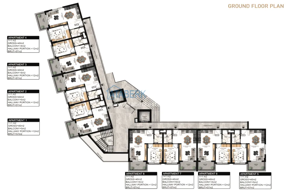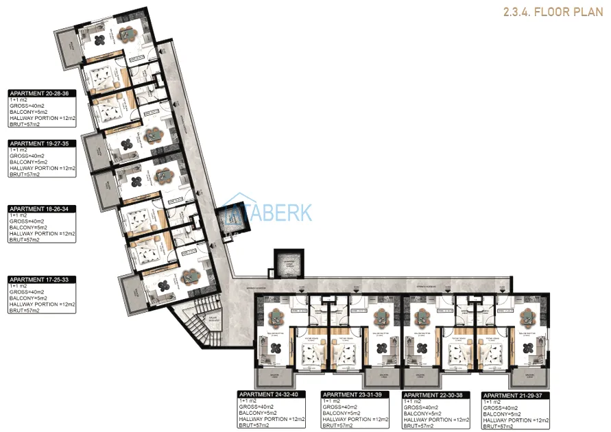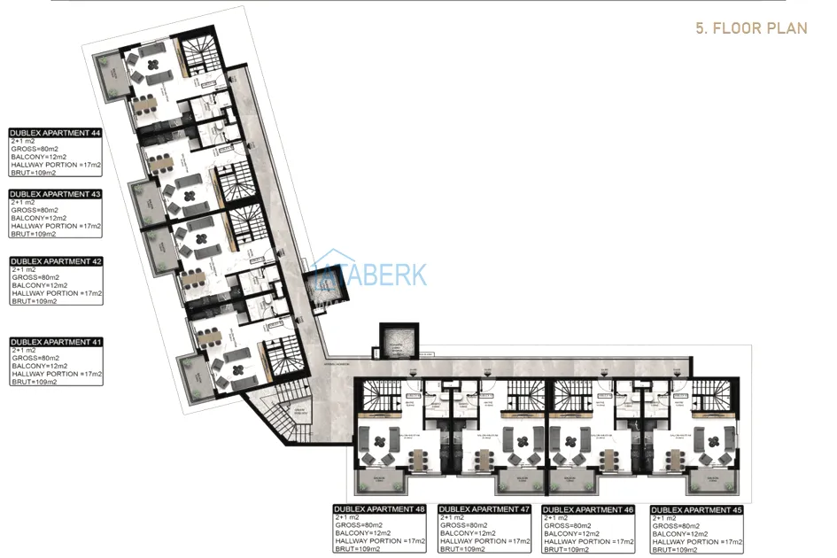 Комплекс строится на участке площадью 2 264 м2. Это будет одноблочное 6-этажное здание на 48 квартир, с благоустроенной закрытой придомовой территорией, где будут предусмотрены самые необходимые элементы инфраструктуры. Современный дизайн проекта был разработан одной из ведущих компаний Алании. К продаже предложены квартиры двух планировок - 1+1 нетто 40 брутто 57 м2 и дуплексы 2+1 нетто 80 брутто 109 м2. Все квартиры будут сданы в чистовой отделке.